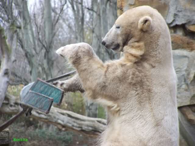 Auch ich war heute im Zoo. Knut wurde um 14:30 h gefüttert. Eigentlich war es ja erst 13:30 h. Nach der normalen Zeit, bekam der Bär, Idefix schrieb es ja schon, sein Futter eine Stunde früher als sonst.