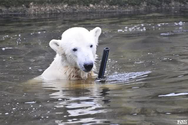 Knut spielt mit dem Schlauch