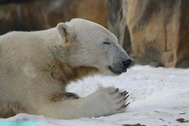 Knut und Gianna hatten heute wohl den Montags-Blues. Sie waren müde und generell unlustig. Beide bekamen heute wieder Lachse von dem Münchener Besuch. Auf der Anlage war nichts für Gianna zu finden und auch im leicht gefrorenen Wasser suchten beide Bären vergeblich. Das verbesserte Gianna’s Laune nicht. Sie beobachtete den Kragenbären. Später schaute Knut auch kurz zu. Dann wurde wieder ausgiebig geschlafen und ab und zu geschaut, ob es endlich Zeit sei hineinzugehen.