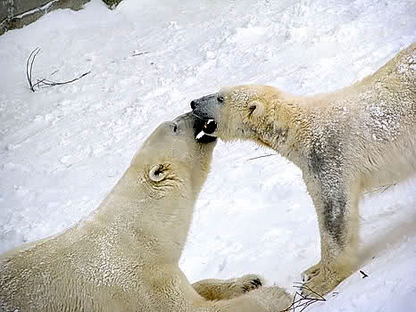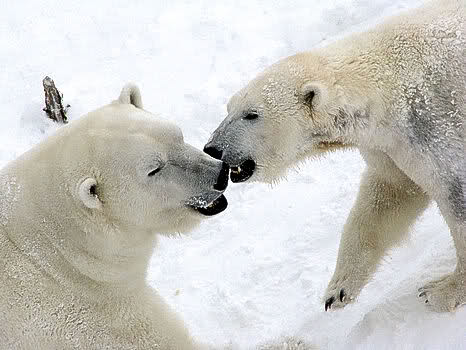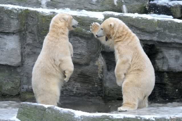 Since the girls are beginning to be mature and because the polar bears are in heat in March-April the bears were allowed to meet each other.