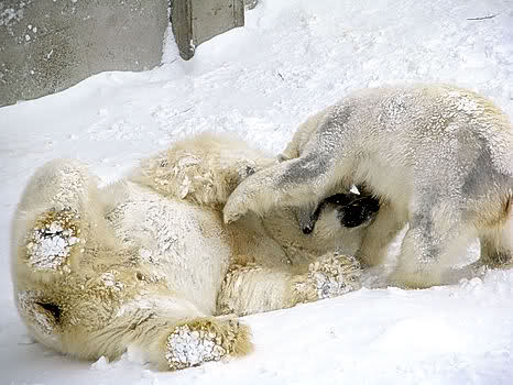 Da die Mädchen beginnen erwachsen zu werden und weil die Eisbären im März-April läufig werden wurden sie zusammen gelassen.