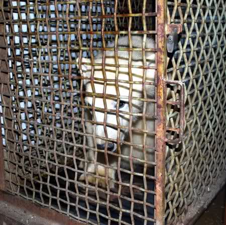 Hinter Gittern: Eisbär Bill in seiner Transportkiste. Der Prachtkerl soll in der ZOOM Erlebniswelt in Gelsenkirchen der neue Partner von Eisbärin Lara werden (Foto: David Ebener, dpa).
