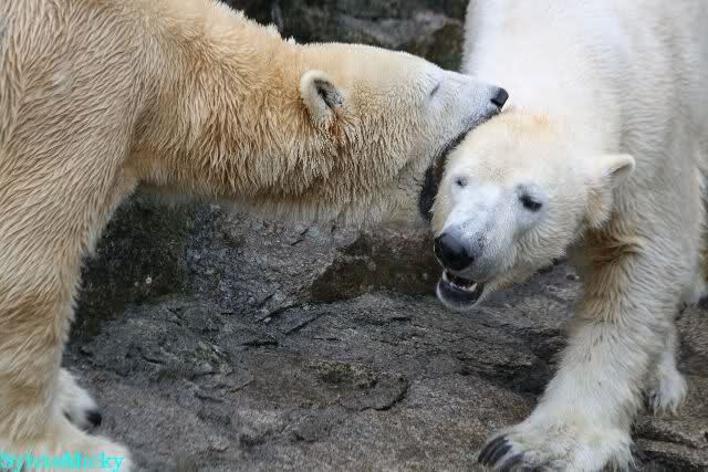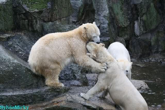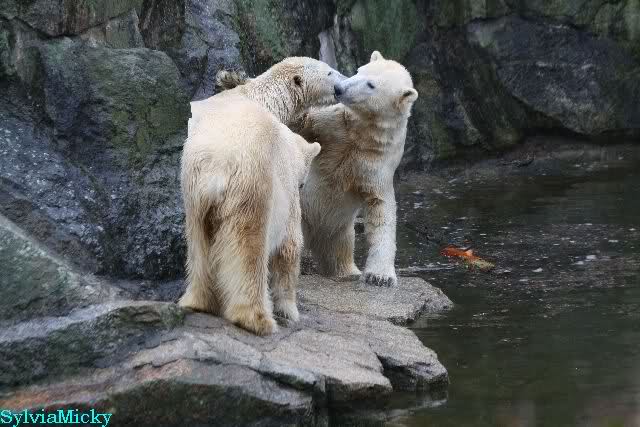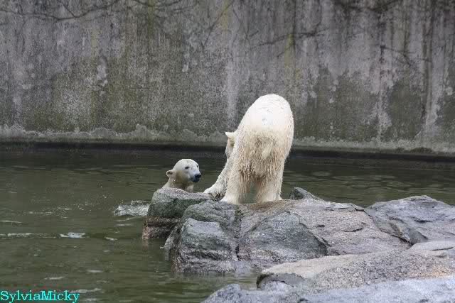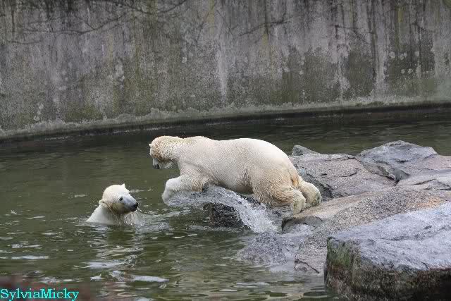 Ja, es war gestern ein besonderer Tag bei den Bären. Knut muß nur mitbekommen, daß Kati sowieso oben rechts hin und her läuft, egal ob er darunter liegt oder nicht.