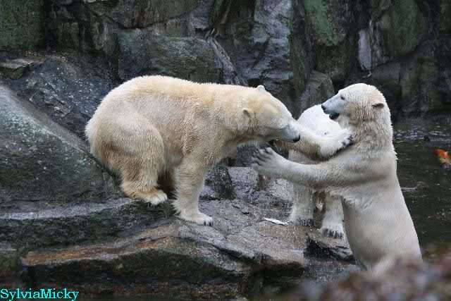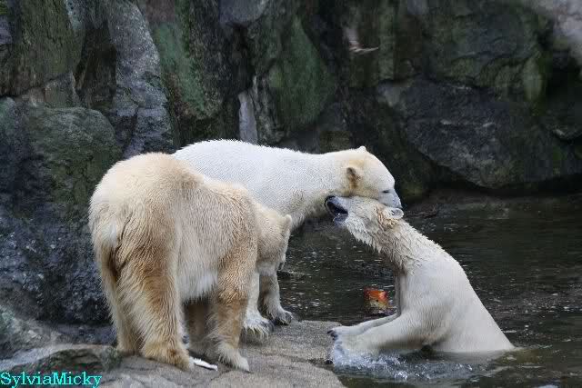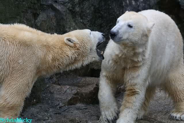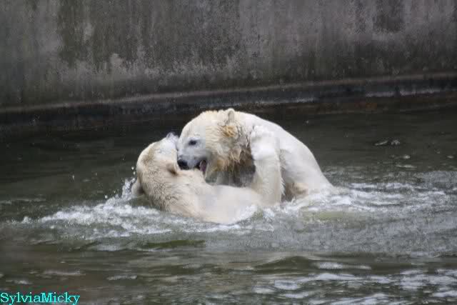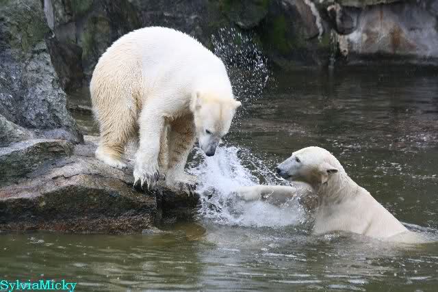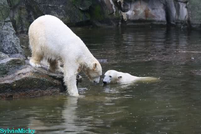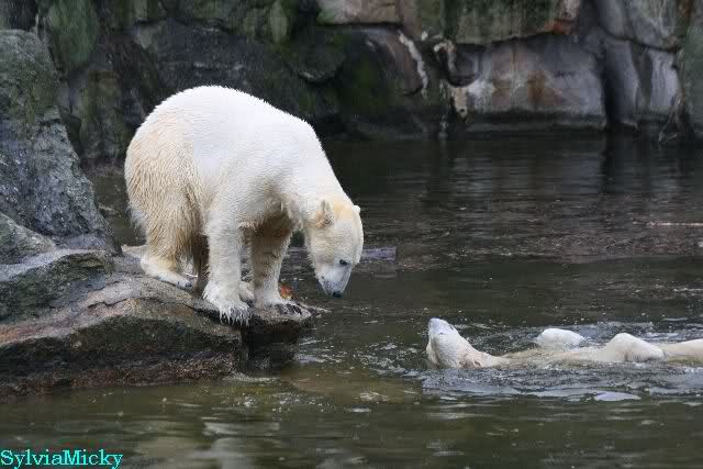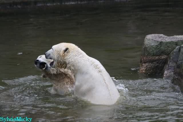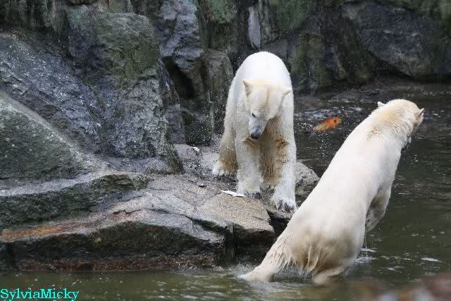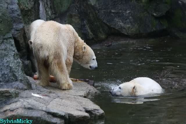 vielen Dank für Deinen heutigen Bericht und die Fotos. Tosca scheint ja echt Ausdauer darin zu haben, Knut ins Wasser zu locken. Schön dass sie mal wieder zusammen getobt haben. Ist ja schon toll, dass Tosca, die ja nicht mehr so jung ist, immer noch so gern spielt und wohl auch die temperamentvollste Bärin auf der Anlage ist, soweit ich das anhand Eurer Berichte und Fotos überhaupt beurteilen kann.