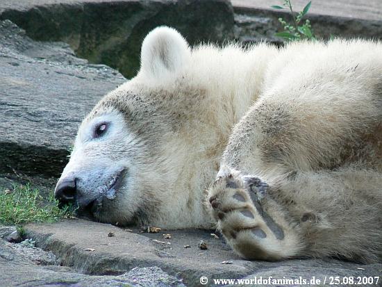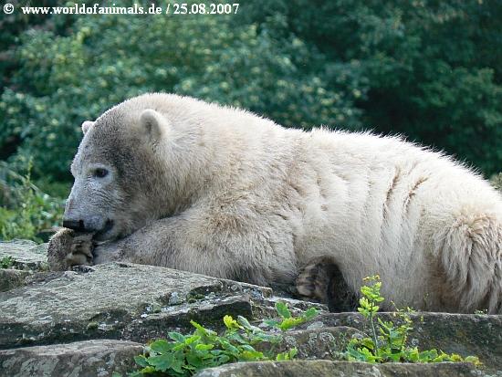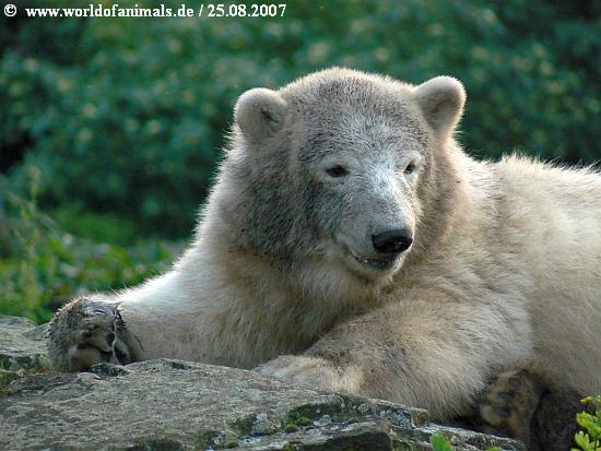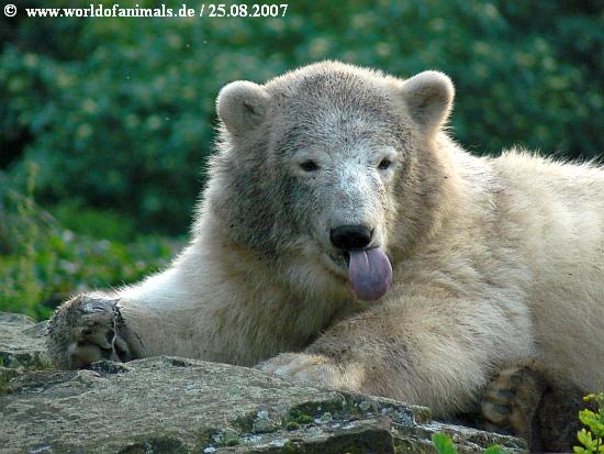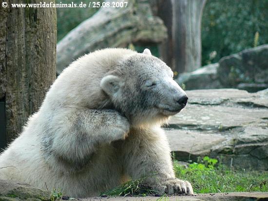 bin ich froh das es Tosca wieder besser geht, ist doch Knut's leibliche Mama. Ihr wurde von den Menschen viel angetan. Aber jetzt hat sie es gut, soweit es einen Eisbär in Gefangenschaft gutgehen kann.