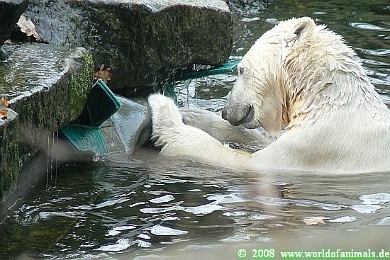 Zum Ende des Tages nun eine weitere Bilderserie von Knut und seinem *Verrückten Aussie Huhn*, seinem speziellen Spielzeug für Zootiere. Viel Spaß.