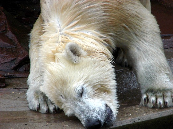 Ich habe heute locker zwei Stunden am Eisbärengehege verbracht, die wieder wie im Flug vergingen. Es war richtig schön, zumal im Gegensatz zu sonst oft etliche Leute da waren, die sich auch sehr über Flocke und Vera gefreut haben.