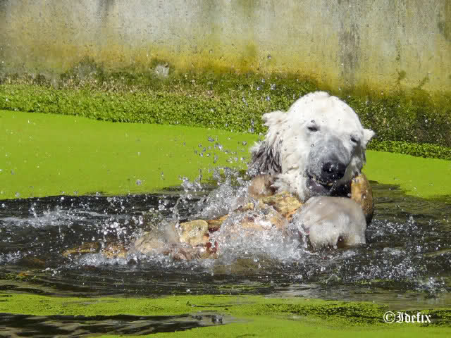 Nach dem Essen panierte Knut sich ein, damit die Fellfarbe wieder stimmt.