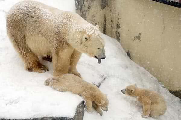 Geboren wurden sie am 10. November vorigen Jahres. Sie sind der 13. und 14. Sprössling der Eisbären Uslada und Menschikow (der zu Ehren eines Kaps seinen Namen trägt, in dessen Nähe er einmal in Freiheit lebte).