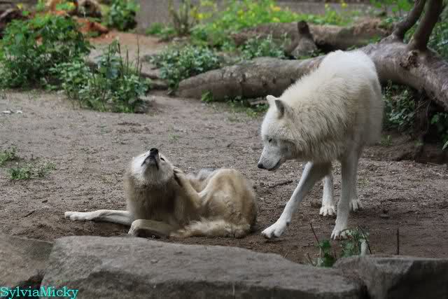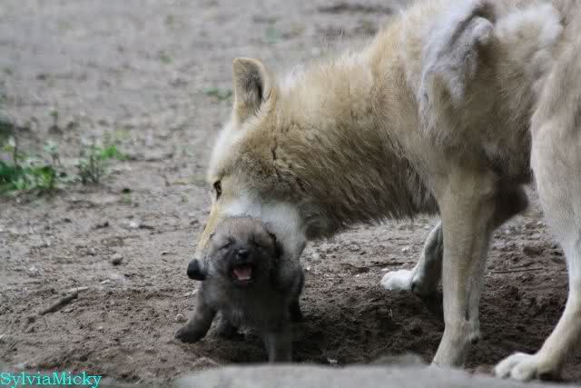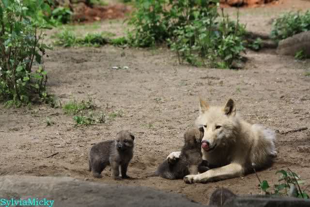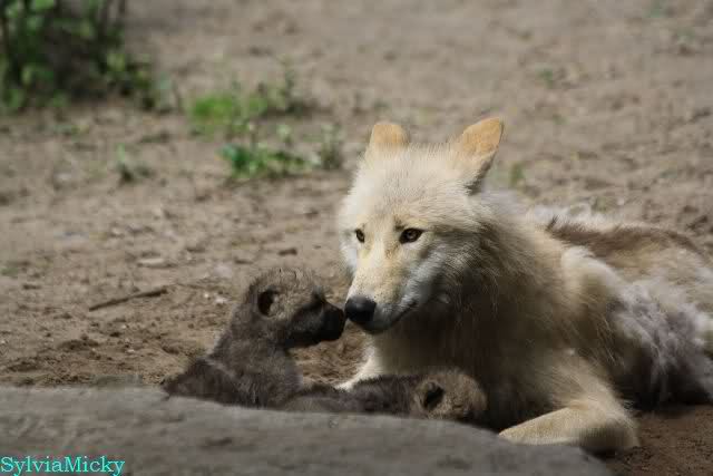 Auf Jessies Video sieht man so schön, wie aktiv die Kleinen schon sind. Ich könnte da stundenlang zuschauen. Die Mutter kann einen ja schon etwas leid tun. So oft wie ich heute bei den Wölfen vorbei ging, hingen die Kleinen immer an der Milchbar. Aber die junge Mutter sieht das sehr gelassen.