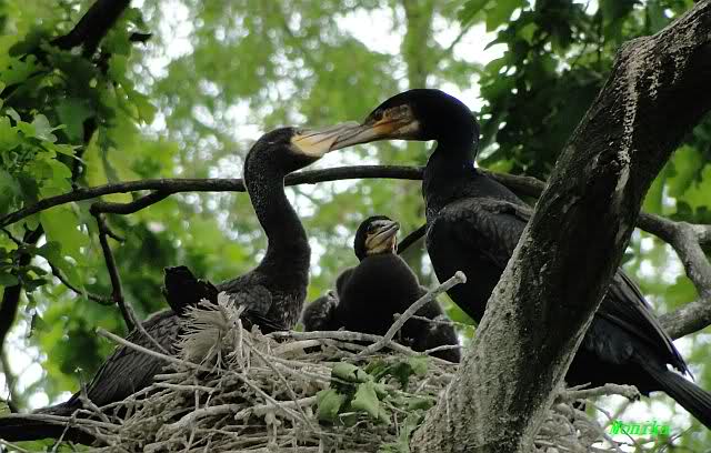 Bei den Kormoranen gibt es schon reichlich Jungtiere.