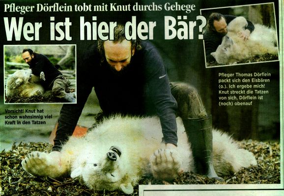 Risiko Knut !!!! Diese Schreibtischtäter (genannt Redakteure )haben ja ganz bestimmt jahrelange Tierpflegererfahrung mit Bären - genau wie Thomas Dörflein. Herr Dörflein weiß sehr wohl, was er macht und ist mit Sicherheit ein verantwortungsbewußter Mensch