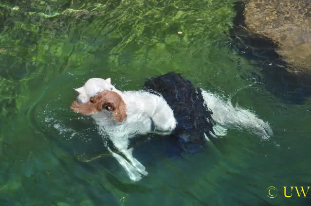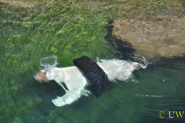 Hier beweist Rasputin, dass er nicht zu dick ist, er bleibt nicht im Reifen stecken sondern schwimmt locker hindurch