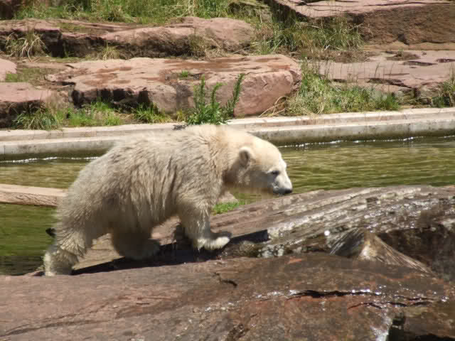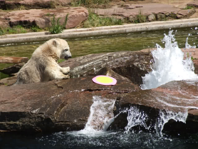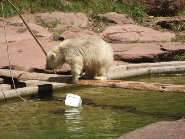 An einem Sonntag im Nürnberger Zoo. Vor dem Bärengehege machen die Besucher allerhand Grimassen und Kapriolen, um die Aufmerksamkeit von Flocke zu erregen.
