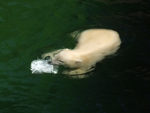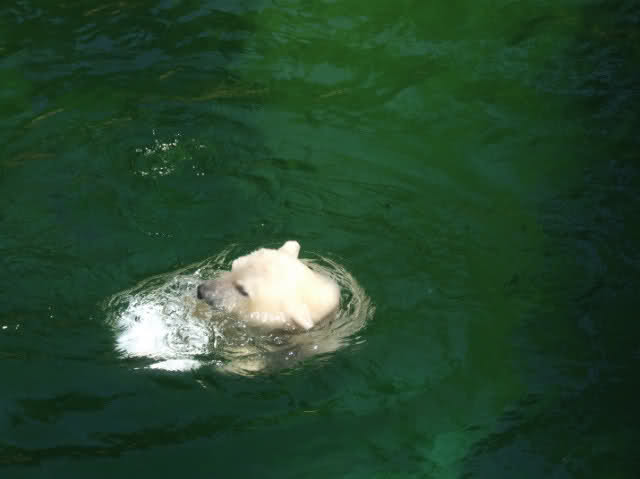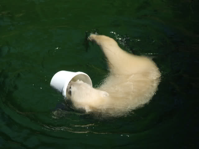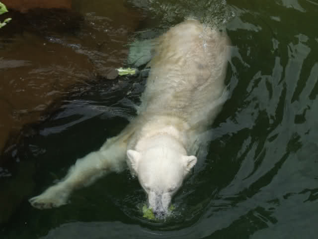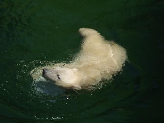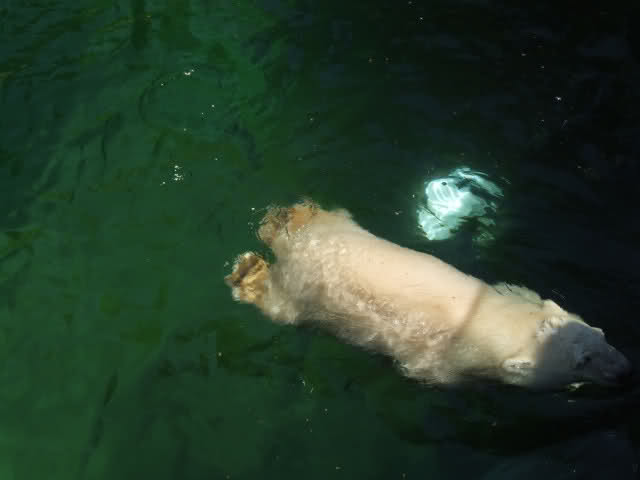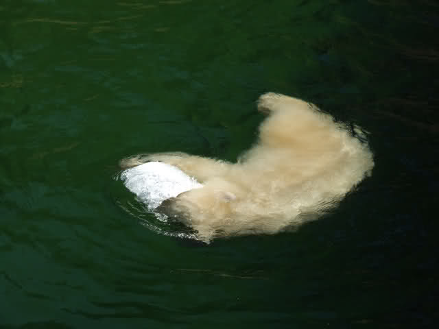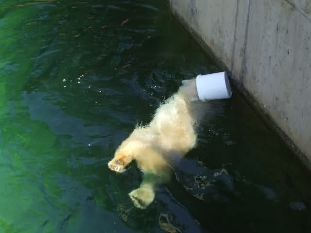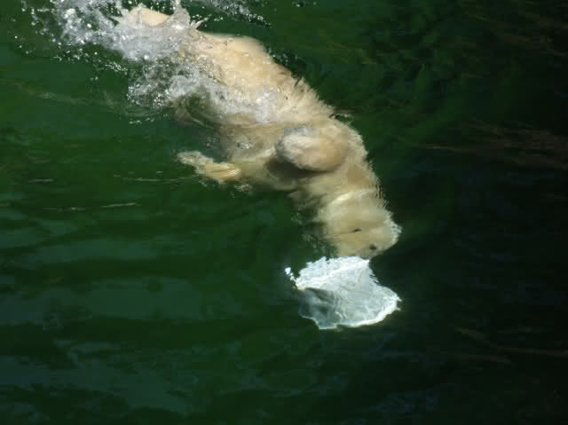 auch beim Schwimmen steckt Flocke den Kopf gerne irgendwo hinein