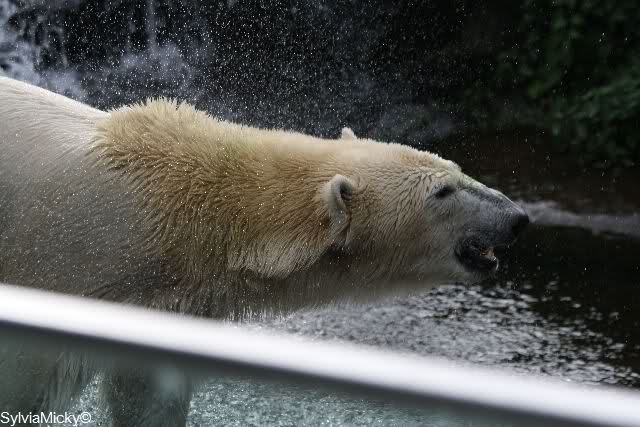 Aufregend auch der Tag im Zoo mit sehr vielen Besuchern, wie Sylvia es ja schon schrieb. Wie oft ich heute gesagt habe, das dies nicht Knut sei, sondern Giovanna, habe ich irgendwann nicht mehr gezählt. Aber woher sollen die auswärtigen Besucher auch wissen, wer auf der Anlage ist.