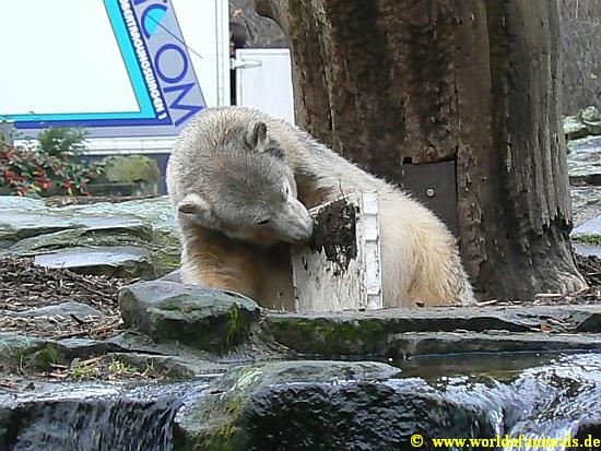 After all, Knut did play with the wooden candle and with his new toy, the tray / Nach dem *Großen Fressen* spielte Knut mit der Kerze aus Holz, aber noch mehr mit seinem neuen Spielzeug, dem Tablett