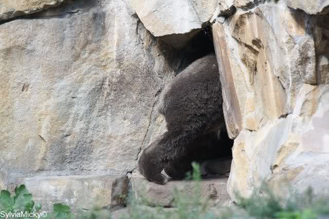 So gegen 11.00 Uhr ging er in die Höhle, kam wieder raus, um gleich wieder hinein zu gehen. Das ging eine ganze Weile so. Bis er dann um 1/2 12.00 Uhr in der Höhle blieb. Man konnte sehen, dass er vor Giannas Gitter mit den Pfoten schabte und sich dann davor legte. Es war kein Brummem oder derartiges zu hören.Das gibt doch Hoffnung, dass sich die beiden mögen. Nach einer Stunde war er immer noch drin, dann mußte ich leider gehen.