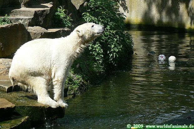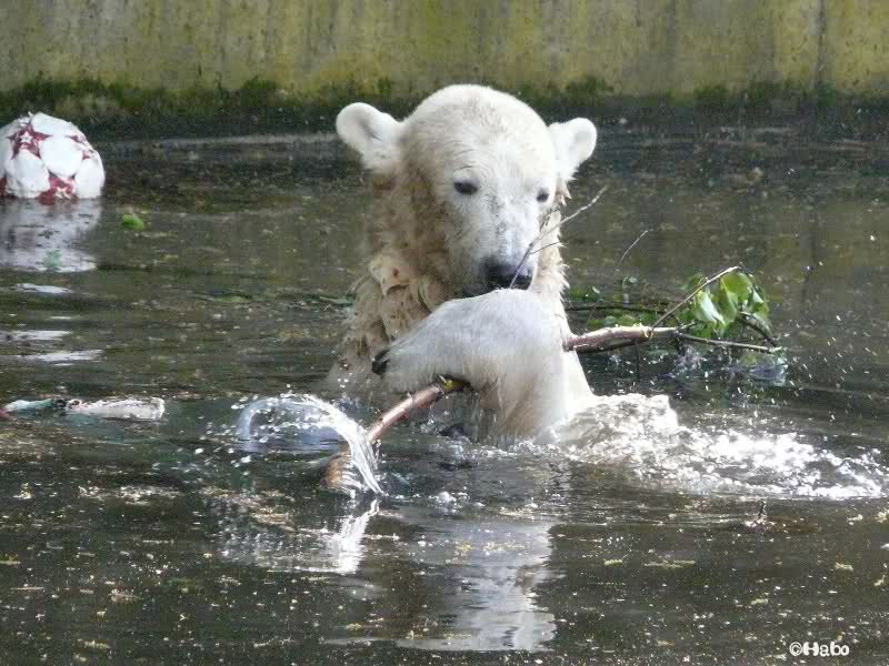 Knut ist heute trotz toben und spielen wunderschön weiß geblieben. Kein Wunder bei den vielen Bädern, die er heute genommen hat.