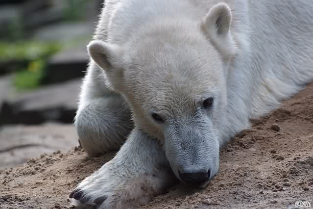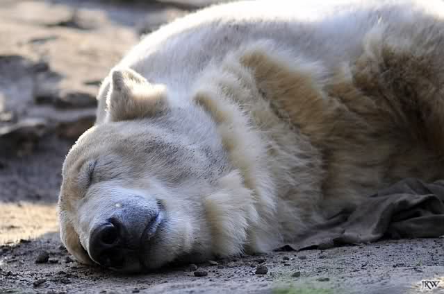Als ich heute am Spätnachmittag in den Zoo ging ruhte sich Knut auf seinem Sandhügel aus. Nachdem er den ganzen Tag rumgetobt hat.