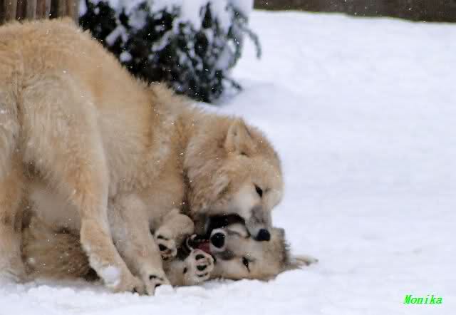 Auch die Wölfe haben viel Spaß im Schnee
