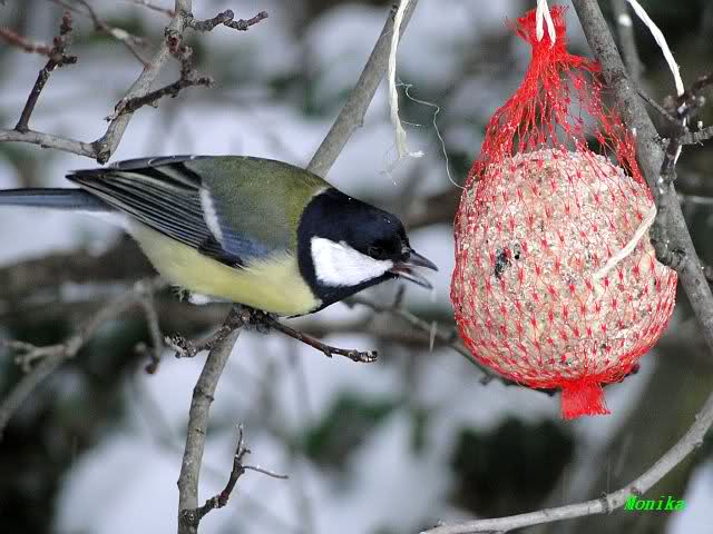 Vor dem Eisbärgehege haben die ersten Tierfreunde die ersten Meisenknödel aufgehangen.