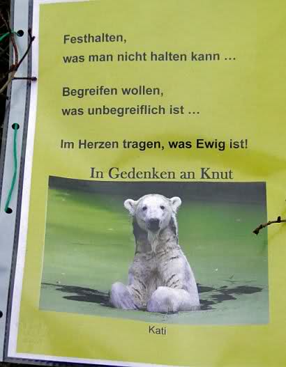 Aber auch die Familie von Hr. Dörflein uns seine Lebensgefährtin verdienen unser Mitgefühl. Ich hoffe daß sie viele bei der ihrer Aktion unterstützen, siehe Facebook und Gedenkbuch Knut.