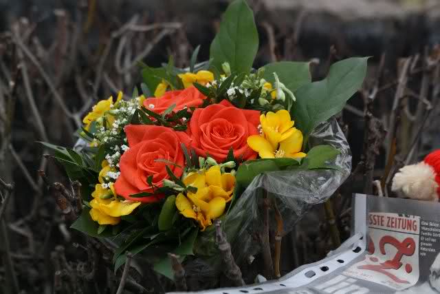 Aber auch andere Kinder und Erwachsene weinten und legten Blumen ab. Aber auch Croissants.