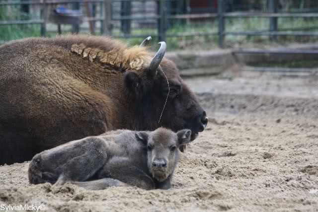 Das kleine Wisent ist zwei Tage alt. Es ist ein Bulle
