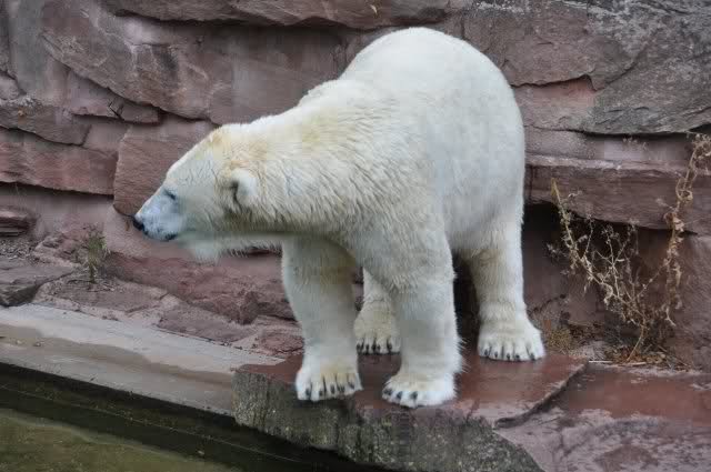 In Nürnberg ist der Braunbär leider alleine. Auf der Tafel dort steht bei Bestand: "fast vollkommen ausgerottet". Das ist sehr schade.
