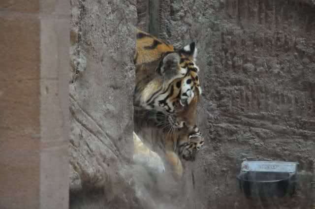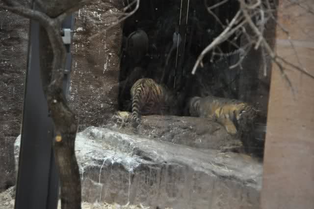 Die kleinen Tiger waren auch zu sehen, leider waren die Scheiben ziemlich verschmiert, so dass die Bilder nicht so gut sind. Leider haben ziemlich viele Leute mit Blitz fotografiert, die Tiger haben sich dadurch zwar nicht sehr beeindrucken lassen, angenehm ist das für so ein Tier aber sicherlich nicht.