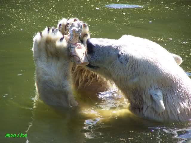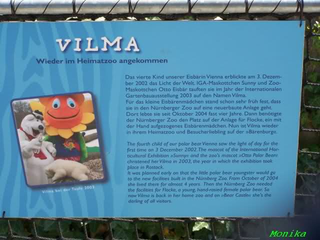 Es ist schoen *Vilma* so gluecklich zu sehen, sie laechelt ja foermlich! Ueberhaupt nachdem man sie damals so traurig 'abschob', aber ihr Weg fuehrte ja, ein Glueck, nach Hause. Habe oefter mal an sie gedacht + wie es ihr wohl jetzt gehen mag. Danke fuer die schoenen Bilder von ihr + auch von den anderen Polarbears in Rostock.