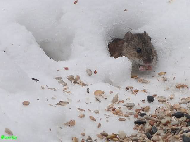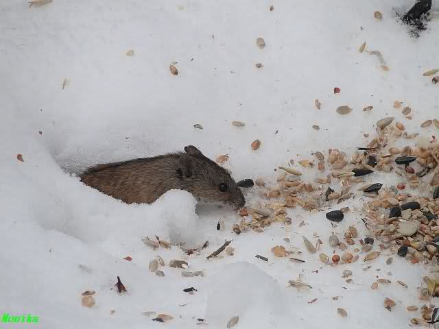 Diese kleine Maus freut sich über das "Vogelfutter"