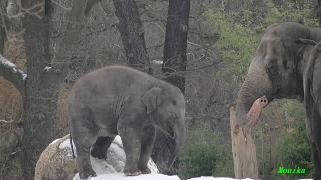 Während die großen Elefanten an der Tür standen und rein wollten, spielte Ko Raya vergnügt im Schnee.