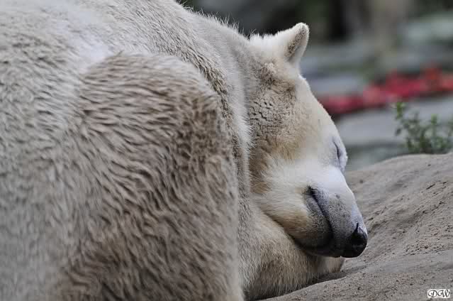 Heute sahen wir einen müden Knut, der alle Annäherungsversuche von Gianna praktisch ablehnte. Bei aller Müdigkeit riskierte er immer wieder ein Auge um zu sehen, ob die Luft rein war.