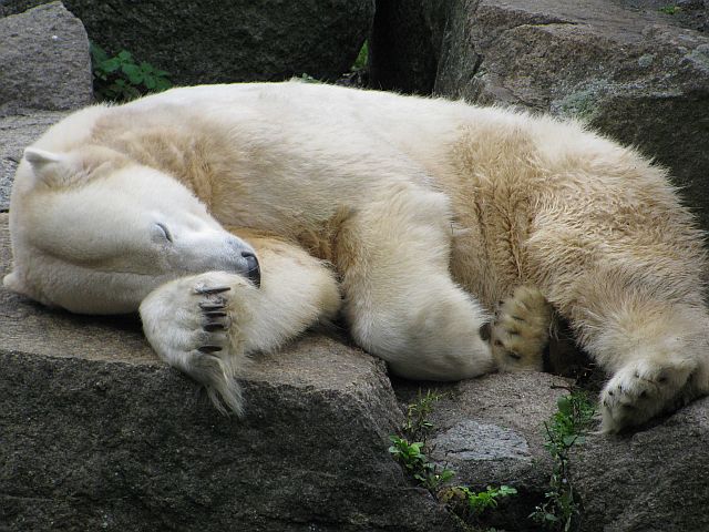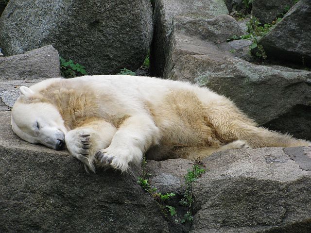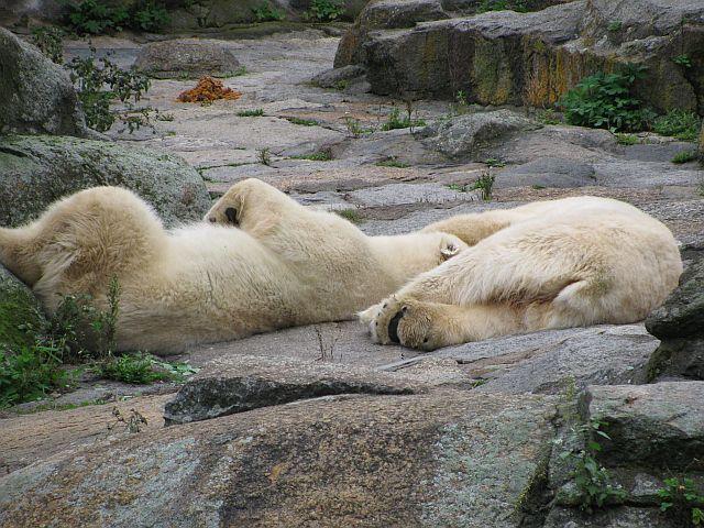 Knut lag wie in den letzten Tagen heute früh auf dem unteren rechten Felsen und schlief. Die Großen auch.