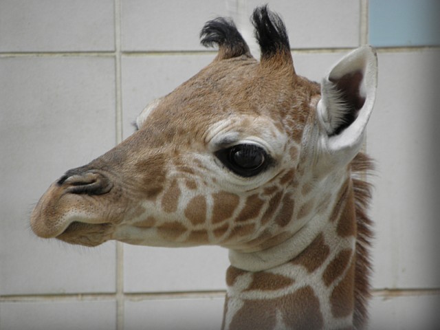 Zuerst habe ich aber den kleinen Giraffenbullen Carlo besucht, meine Güte, ist das ein goldiges Kerlchen. Recht zierlich, wie auch schon in der Presse zu lesen war, aber sehr aufgeweckt und wirklich bildhübsch. Hier mal ein Foto: