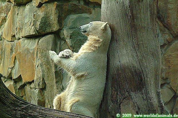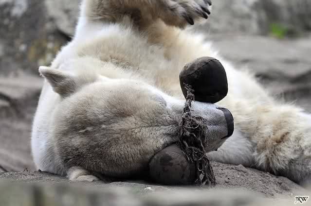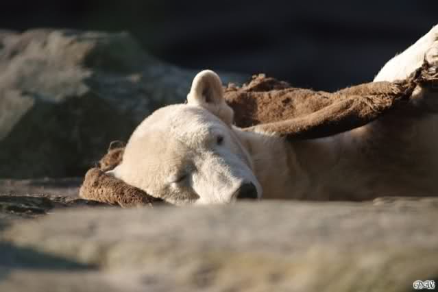 Knut bekam heute einen neuen Jutesack, der liebevoll (nach Anweisung eines Tierpflegers) genäht und gefüllt wurde. Er soll begeistert damit gespielt, sich dann damit zur Ruhe gelegt haben. Als er wieder aufstand entschied er sich doch für sein Nackthuhn. Auch heute hatte er keine Zeit für einen Hungermarsch. Auf eigene Bilder vom Jutesack müssen wir leider noch warten, da wir zu spät in den Zoo kamen. Aber egal was Knut macht, schön ist er allemal. Meint Ihr nicht?