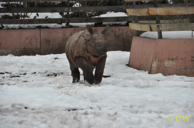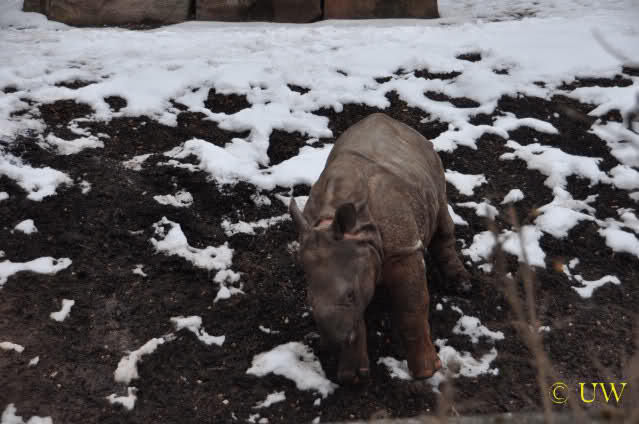 Das Nashörnchen tobte ganz ausgelassen herum, es rannte quer über die Anlage und es ist erstaunlich, welche Geschwindigkeit es erreichen kann - vor allem wenn man bedenkt, dass es vor ca. 2 Wochen gewogen wurde und da 309 Kg auf die Waage brachte.