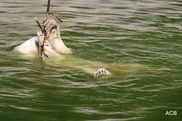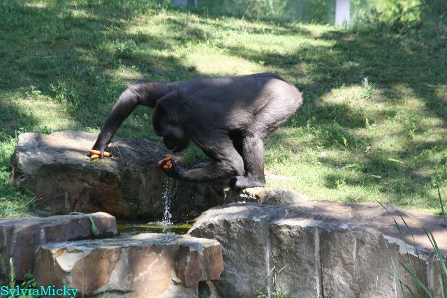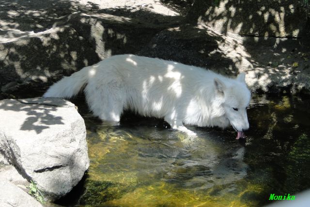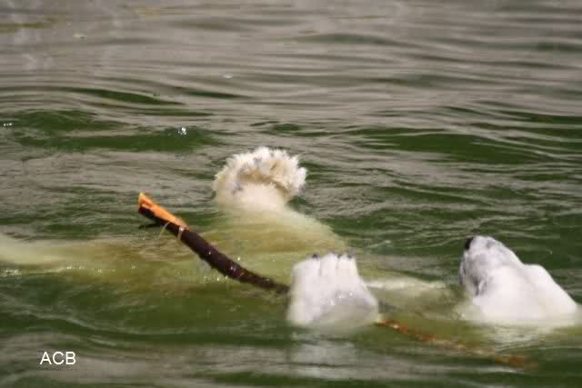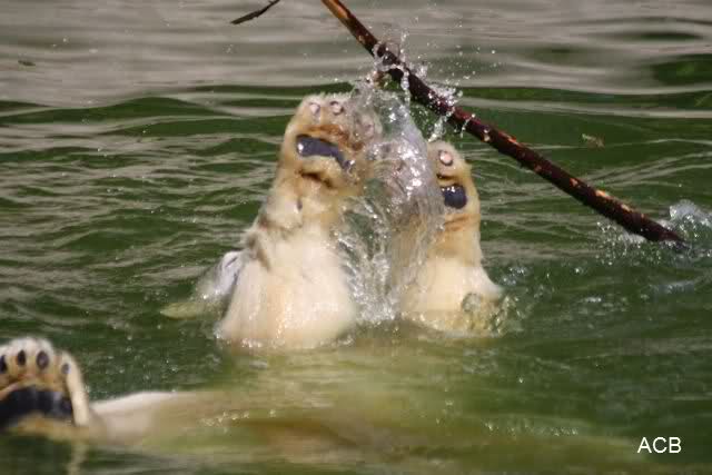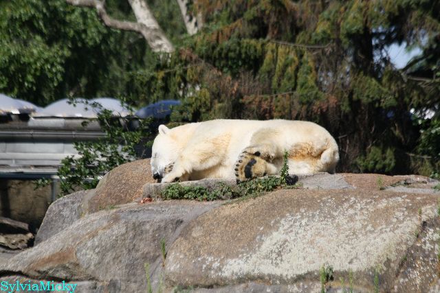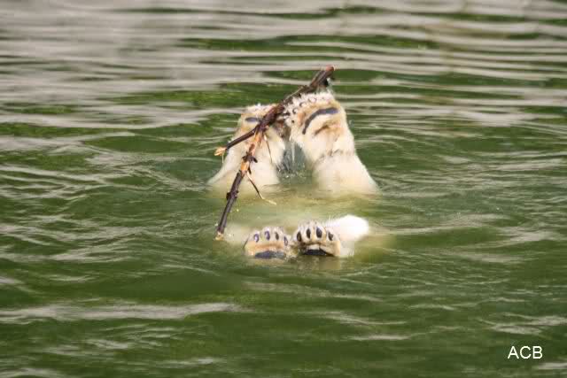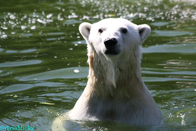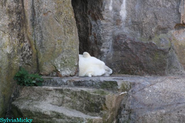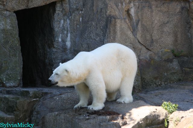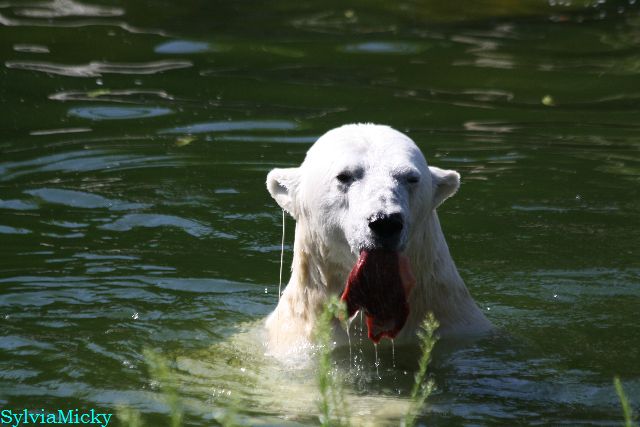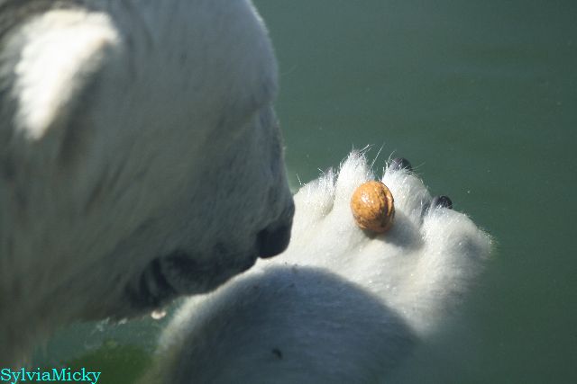 Im großen Eisbären-Becken hatte Nancy viel Vergnügen mit einem Zweig. Es hat sehr viel Spaß gemacht ihr zuzusehen. Viele der Zuschauer hätten bei der Hitze sicher gern mit ihr getauscht