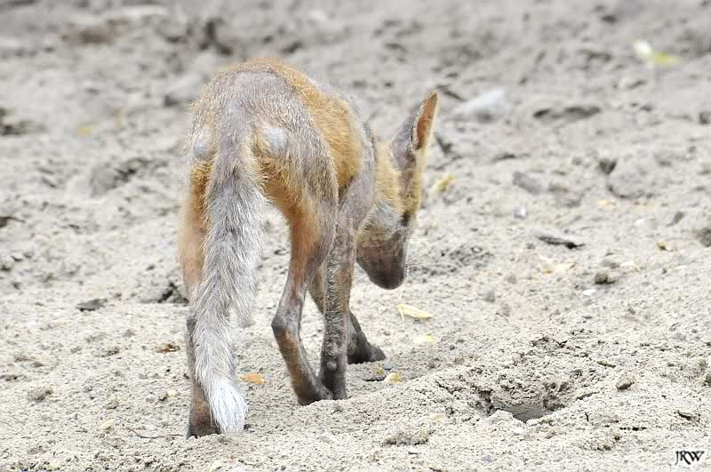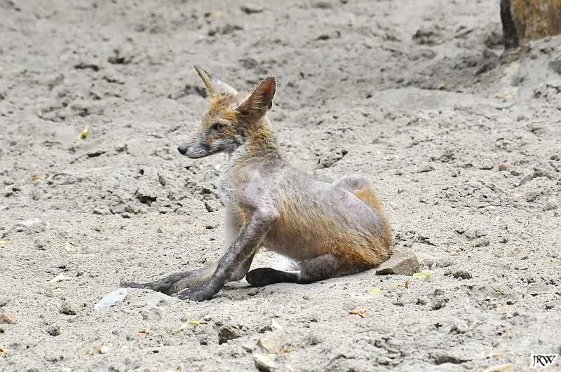 Ein trauriger Anblick. Der kranke kleine Fuchs