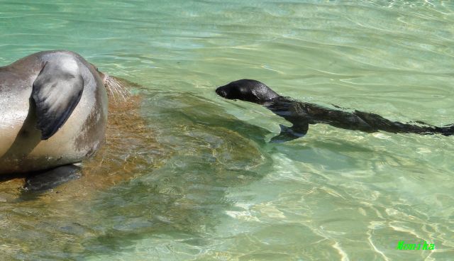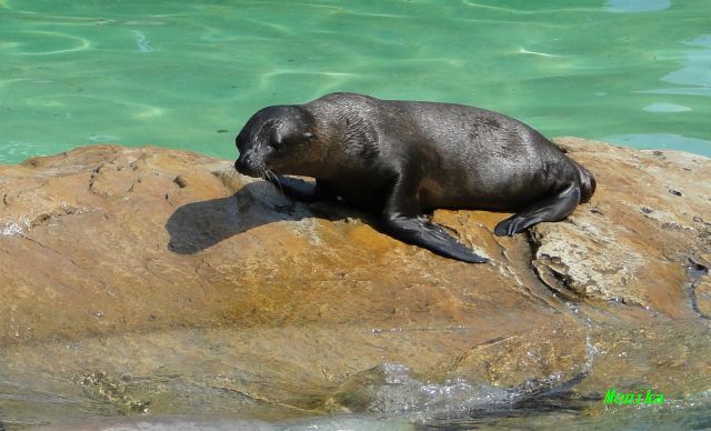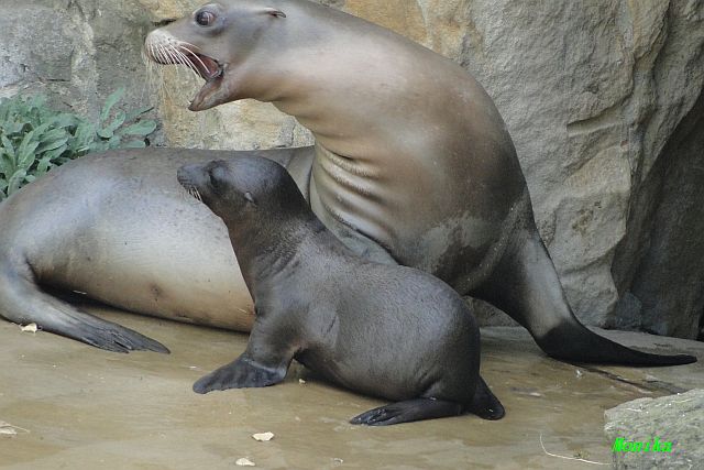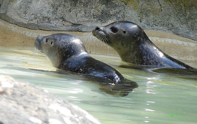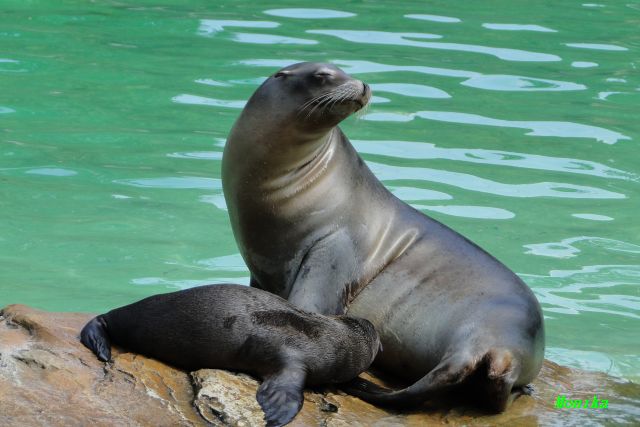 Heute Vormittag waren die beiden Seelöwenbabys das erste Mal auf der Außenanlage. Es sind zwei Mädchen. Beide Mütter waren sehr aufgeregt und machten lautstark klar, dass die anderen Seelöwen die Babys in Ruhe lassen sollen. Diego, der mit den Kleinen spielen wollte, wurde auch verjagt. Die Babys sahen das alles viel cooler. Eines der Kleinen ist ertwas kleiner als das andere.