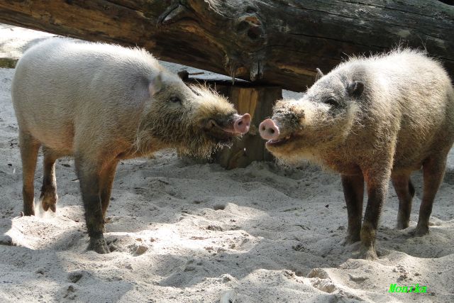 Premiere auch bei Neo. Er war heute das erste Mal mit einem weiblichen Bartschwein zusammen. Neo zeigte überhaupt keine Scheu. Ist immer wieder auf sie zugegangen. Sie war jedoch ziemlich verunsichert, und schnaufte ihn an. Nächste Woche soll ein weiteres Weibchen dazu kommen.