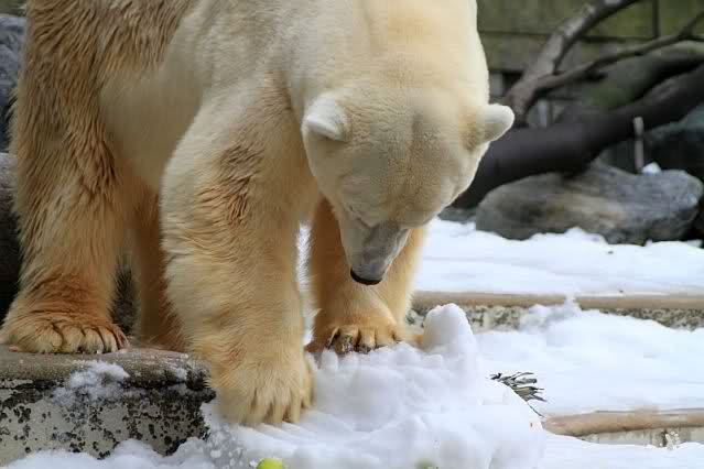 ... und für die Besucher eigenhändig die Wege rund um's gesamte Eisbärgehege blitzblank geräumt, von der kleinsten Schneeflocke befreit ...