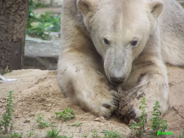 Pssst,liebe Monika!!! Gut kombiniert, Knut ist soooo müde,na, wieso nur??? Natürlich war er auf meiner Geburtstags- Fete, und hat dermaßen einen abgerockt, das seine "kleinen" Bärentatzen glühten, und die musste er dann heute Morgen etwas schonen, das verstehst Du doch, oder??? Anne