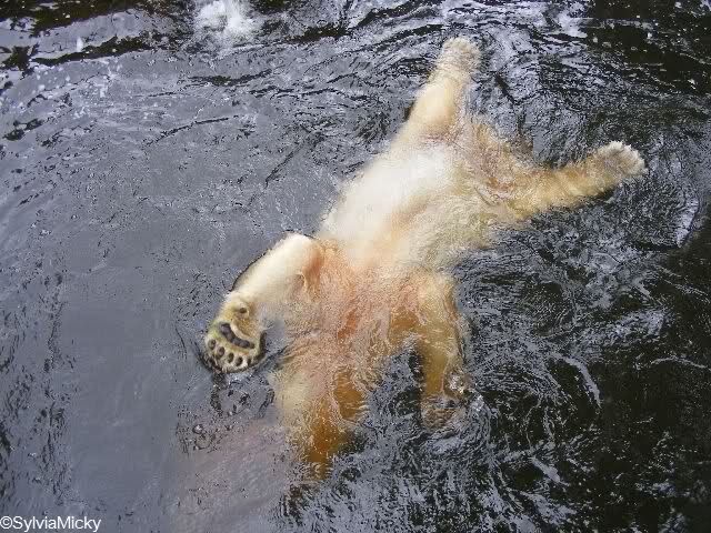 auf Deinen Bildern sieht Knut mit seinen schwarzen Flecken so aus wie am letzten Wochenende, so als ob er seitdem nicht mehr im Wasser gewesen ist :-).