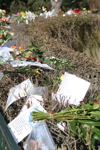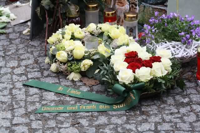 Heute wurden im Minutentakt Blumen, Briefe, Fotos an der Anlage und vor dem Löwentor abgelegt.