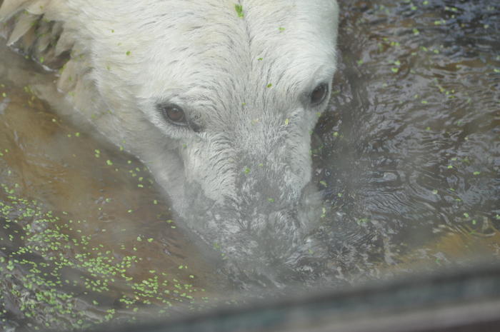 Ich setzte mich unten, an der Glasscheibe, auf die Sonnen Bank, und fühlte mich "Knut" unheimlich nahe, ganz seltsam war das. 15.15 Uhr fing der Himmel an, sich zu verdunkeln, die Wolken schoben sich zusammen, bis eine riesige, weiße Kugel entstand, und aus den Wolken zogen helle Strahlen ihre Bahnen. Da war es genau 15.20 Uhr.Ich hatte das Gefühl, als wenn die ganze Welt für einen Augenblick den Atem anhält.