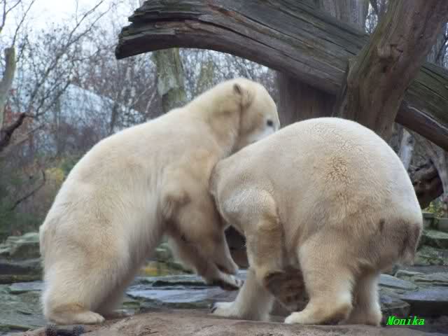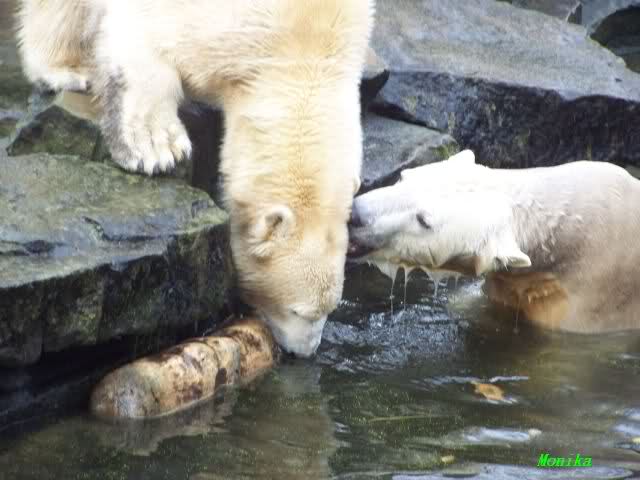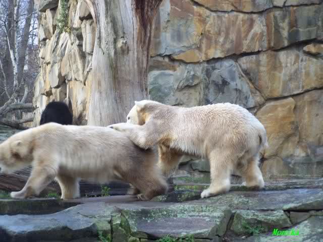 am 60. Tag ist es geschafft! Beide spielen und amüsieren sich zusammen, Knut ist jetzt ein Eisbär! Wie dicht liegen Freud und Leid zusammen, gerade habe ich an den Tag gedacht, als Knut erstmals alle verzaubert hat und am gleichen Tag Yan Yan gestorben ist. So ein Tag ist auch heute. Wollen wir nur alle ganz fest darauf hoffen, dass bei Knut und Giovanna nur Freude ist. Was wird das am 5.12.2009 für ein schöner Geburtstag!