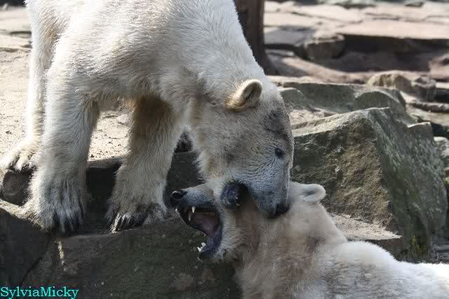 Good evening to you all international Knut & Giovanna friends at the end of Monday. I have posted my first little video from the two polar bears on Youtube. Please klick here > Tauziehen.